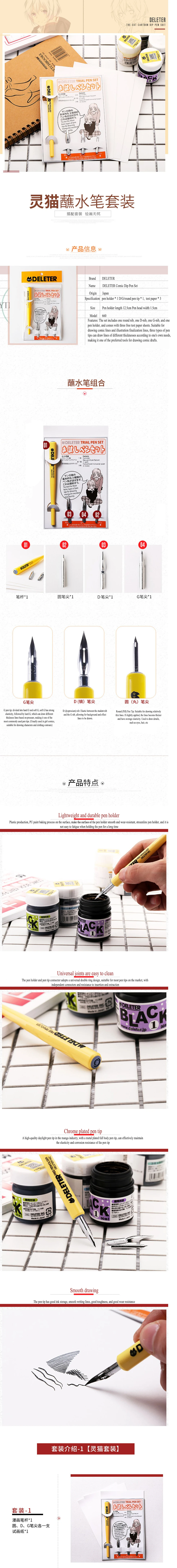 Japan Deleter Dip Pen 660 Series Wood Comics 1 Holder Maru/G/Saji Nib Set Fountain Cartoon Mange Drawing Dip Pens Set