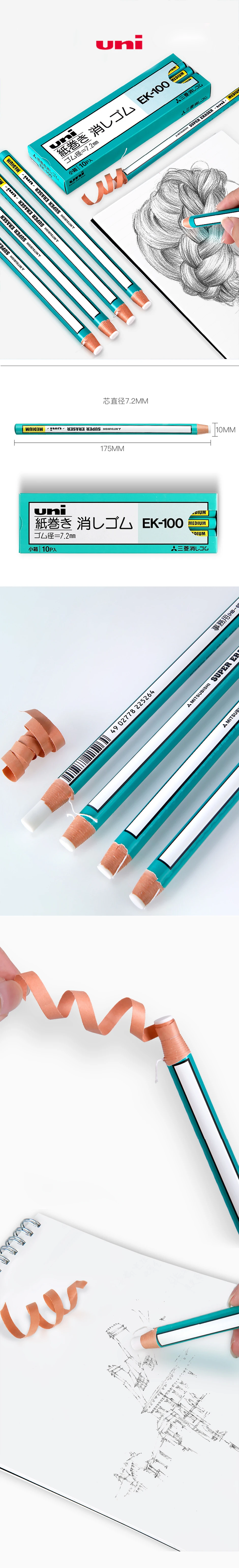UNI Pencil Type Eraser - EK-100 - 3 Pieces - Japan